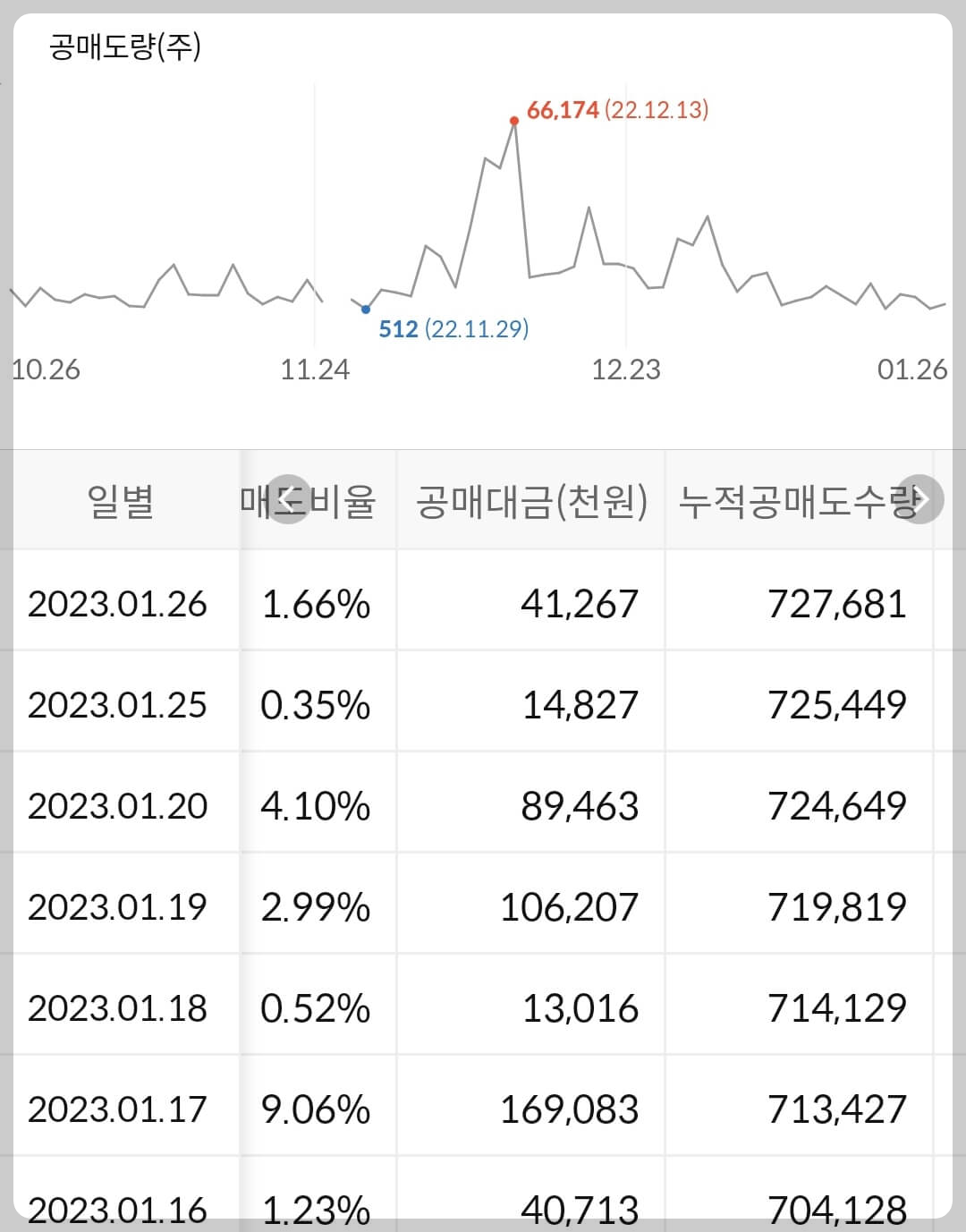 2) 공매도 누적 수급