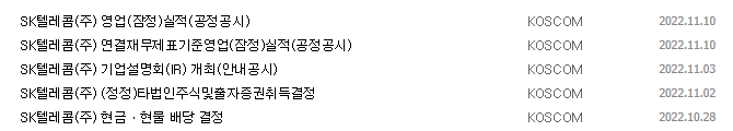 1) 종목명 : SK텔레콤