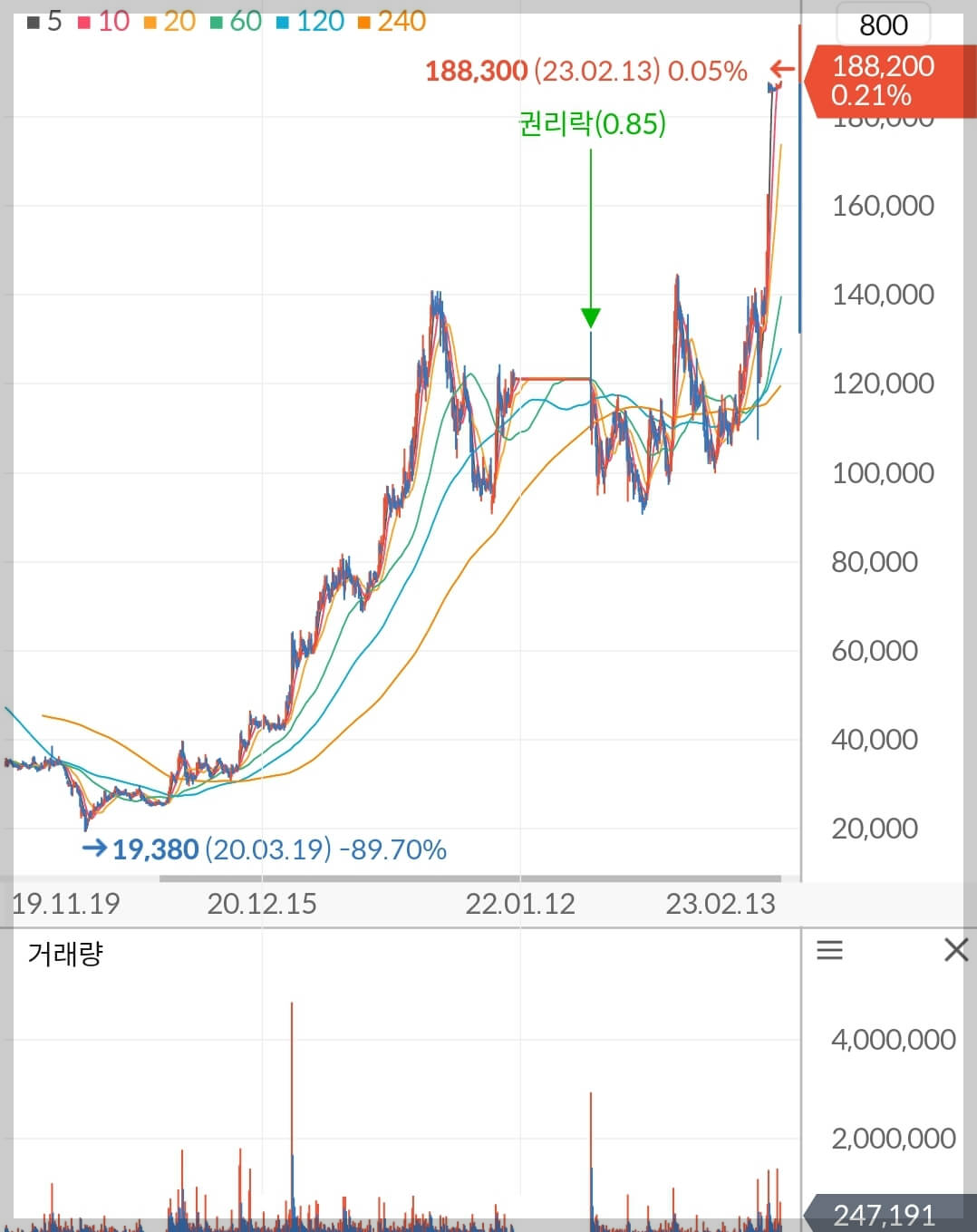 - '22년 1월 횡령 발생 ▼ 주가 120,000원에서 거래정지
