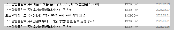 오스템임플란트는 2021년 대규모 횡령사건으로 인해 큰 진통을 겪었지만 거래는 재개되었고 큰 위기는 넘긴 상황입니다. 자본총계가 2,100억 원인 기업이 2,000억 원대의 횡령사고를 당한 건 한순간에 자본잠식 위기에 빠져 유동성 위기에서 헤어 나오지 못해 파산에 이를 수 있는 초대형 악재인건 맞습니다.
