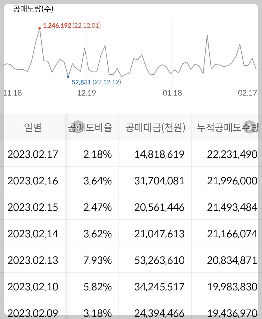 2) 공매도 누적 수급