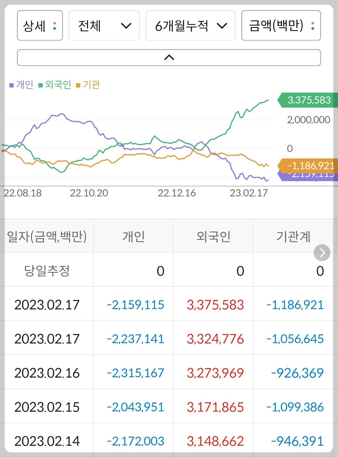 3) 삼성전자 수급 종합평가