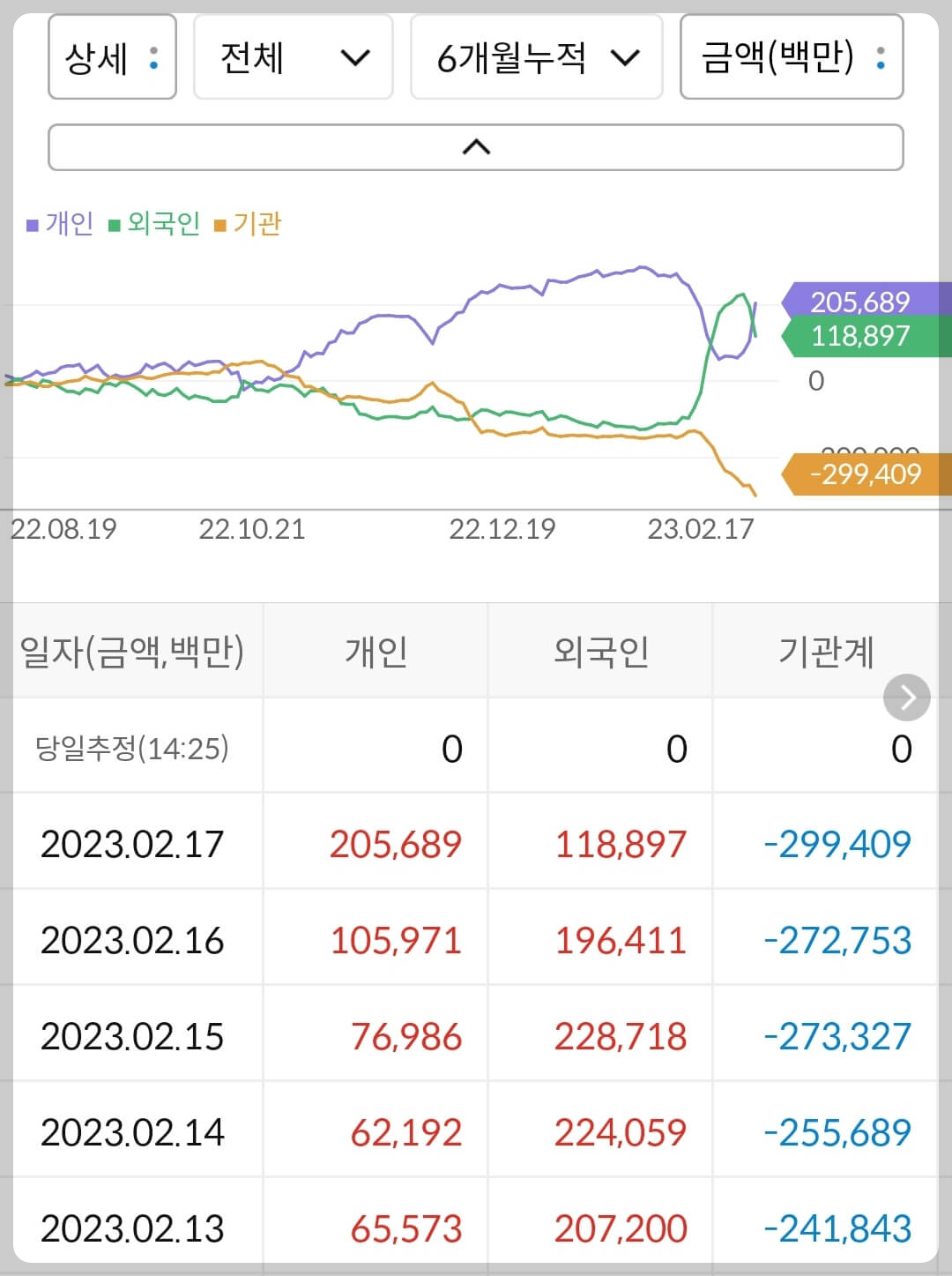 - 개인 2,000억 원 매수, 외국인 1,188억 원 매수, 기관 2,994억 원 매도