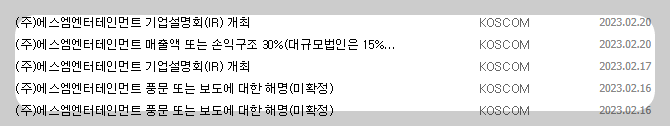1) 종목명 : 에스엠