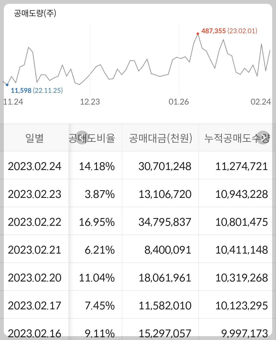 1) 적지 않은 일일 공매도 수급은 주가에 부담