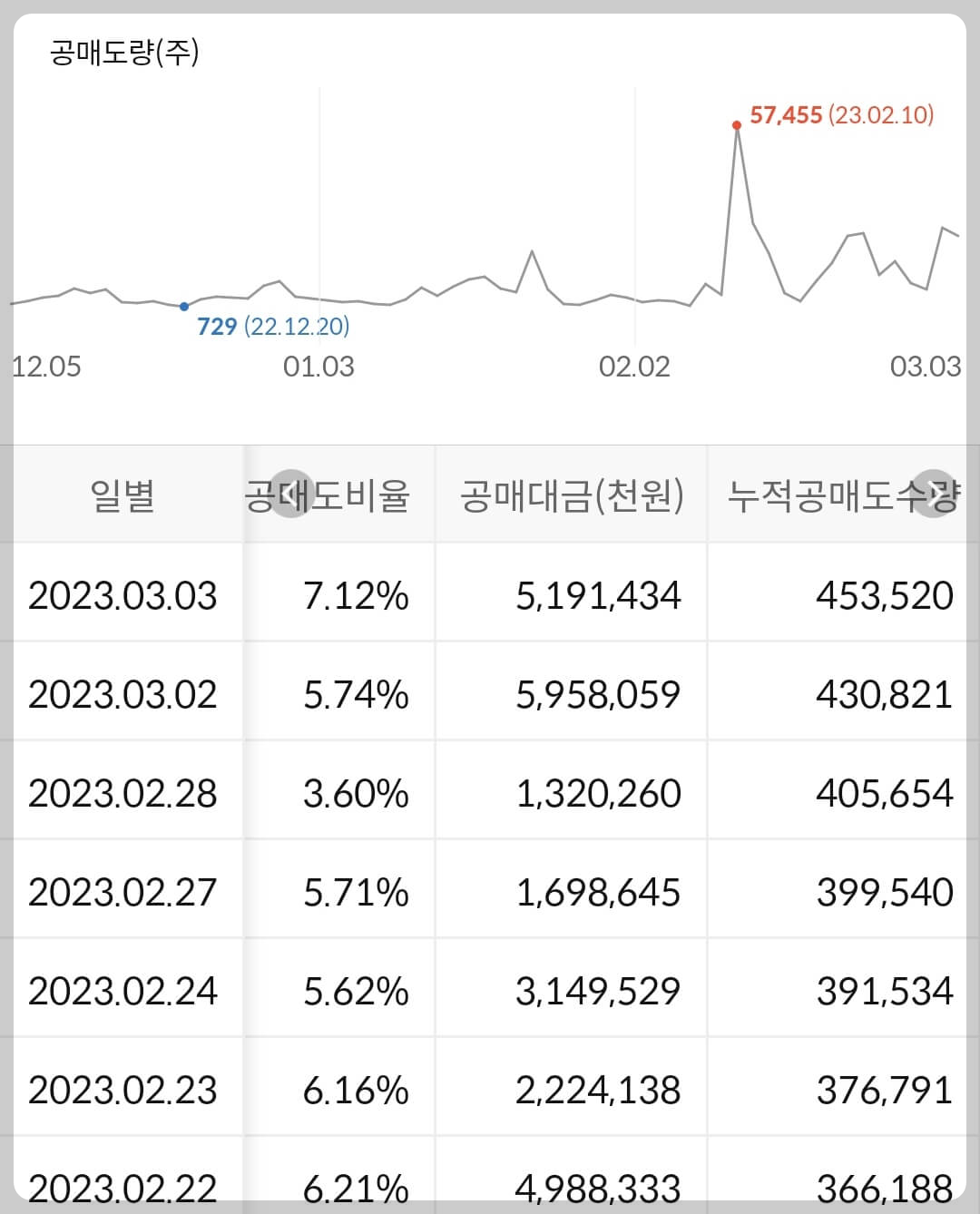 1) 적지 않은 일일 공매도 수급은 주가에 부담