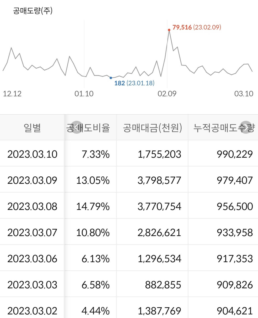 2) 공매도 누적 수급