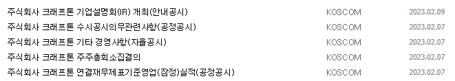 1) 투자 전 반드시 확인해야 될 공시사항은 없습니다.