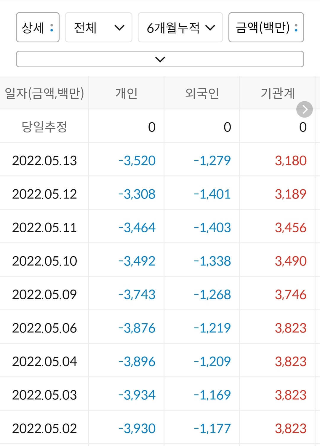 1) 엔비티의 수급상황을 보면 6개월 동안 개인과 외국인은 각각 -35억, -12억을 매도했고 기관은 31억을 매수했습니다. 소형주이다 보니 누적 금액의 수급 자체가 크지 않으며 일방적인 매수 매도보다는 시장 상황이나 테마에 따라 수급이 결정되고 있습니다.