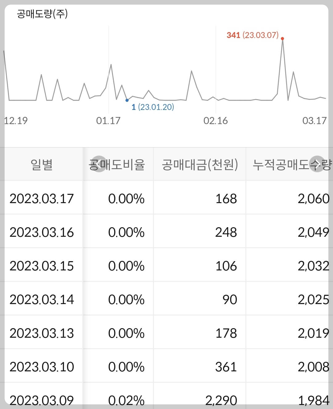 - 개인 79억 매수, 외국인 11억 매도, 기관 61억 매도