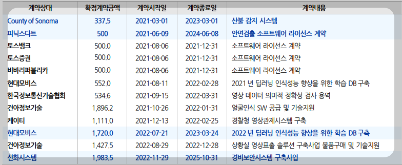 주주들의 호주머니에서 가져간 돈은 신규사업인 헬스케어 플랫폼 진출, 운영자금 조달, 재무구조 개선에 사용될 것입니다. 알체라의 영업손실이 점점 커지고 있는 이유를 들여다보면 영업비용 증가가 특히 눈에 띄는데 이는 AI 인력의 인건비 상승과 채용 확대 과정에서 영업비용이 큰 폭으로 상승해 수익성을 훼손시켰습니다. 아래 알체라의 계약 현황을 보시면 2021년 9건의 신규계약 대비해서 2022년에는 계약건수가 겨우 3건에 불과해 성장에 제동이 걸린 상황입니다.