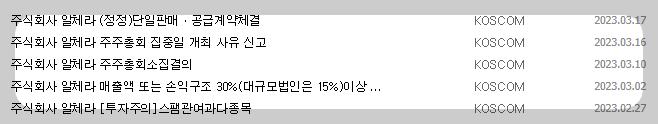 현재 알체라는 흑자전환을 통한 재무건전성 확보가 급선무입니다. 만약 2023년, 2024년에도 대규모 적자를 피하지 못한다면 결국 또 주주들의 주머니를 털어 갈 것이 뻔하며 주주들이 유상증자에 참여하지 않으면 자본완전잠식으로 상장폐지까지 이어질 수 있기 때문에 주주들은 울며겨자먹기로 증자에 참여할 수 밖에 없습니다.
