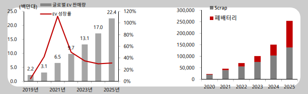 세계 자동차 시장은 내연기관에서 전기모터로 빠르게 전환되고 있습니다. 이에 따라 전기차의 동력원인 2차 전지 수요가 기하급수적으로 증가하기 시작하며 2차 전지 셀 메이커 및 양극재와 같은 핵심소재 생산기업들의 실적도 크게 증가했습니다. 그리고 조만간 엄청난 양의 배터리들은 수명을 다해 폐배터리가 되어 쏟아질 것이며 이를 자원화 할 수 있는 기업의 실적성장은 담보되었다고 봐도 과언이 아닙니다.