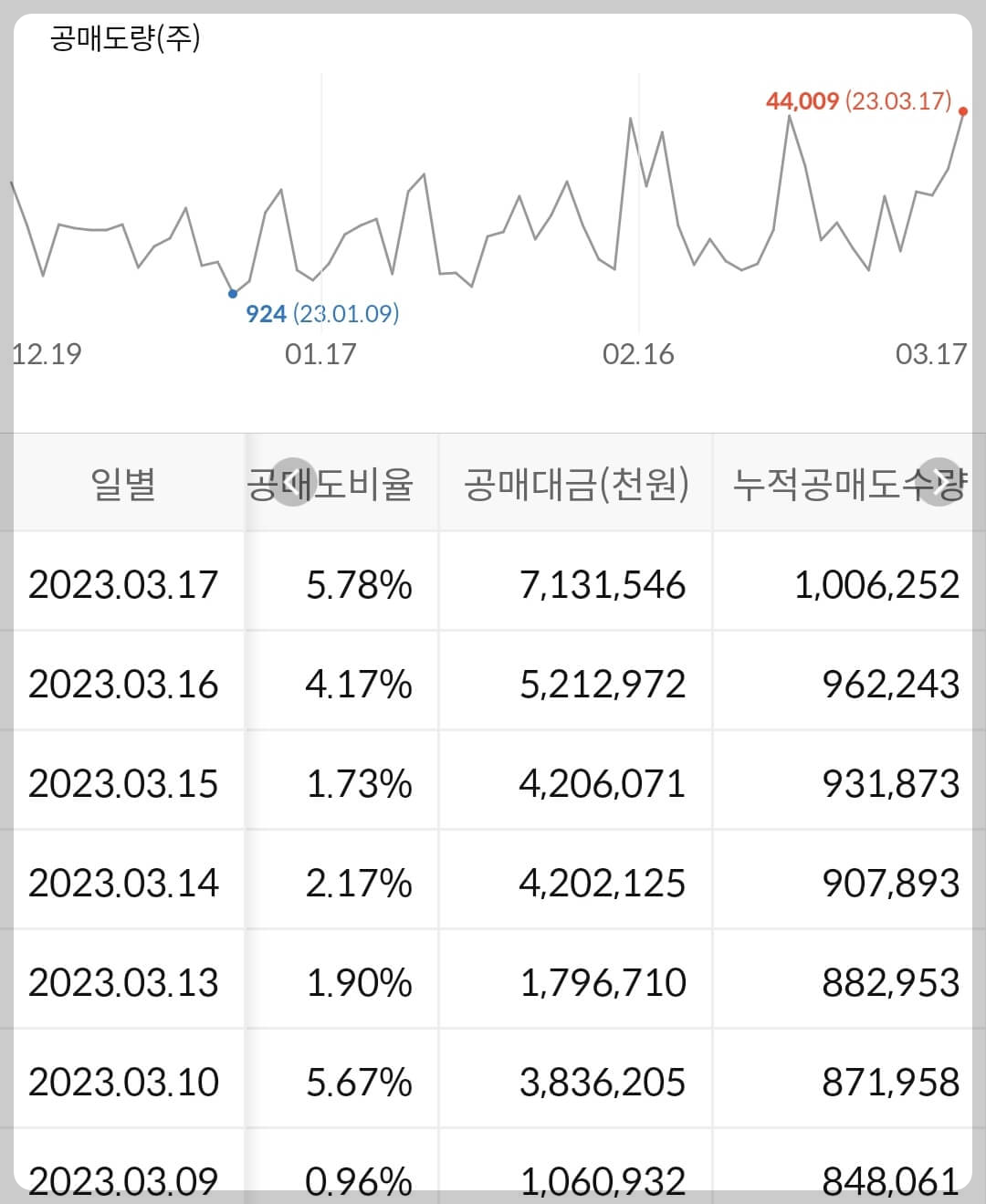 1) 단기 급증한 일일 공매도 수급은 주가에 부담