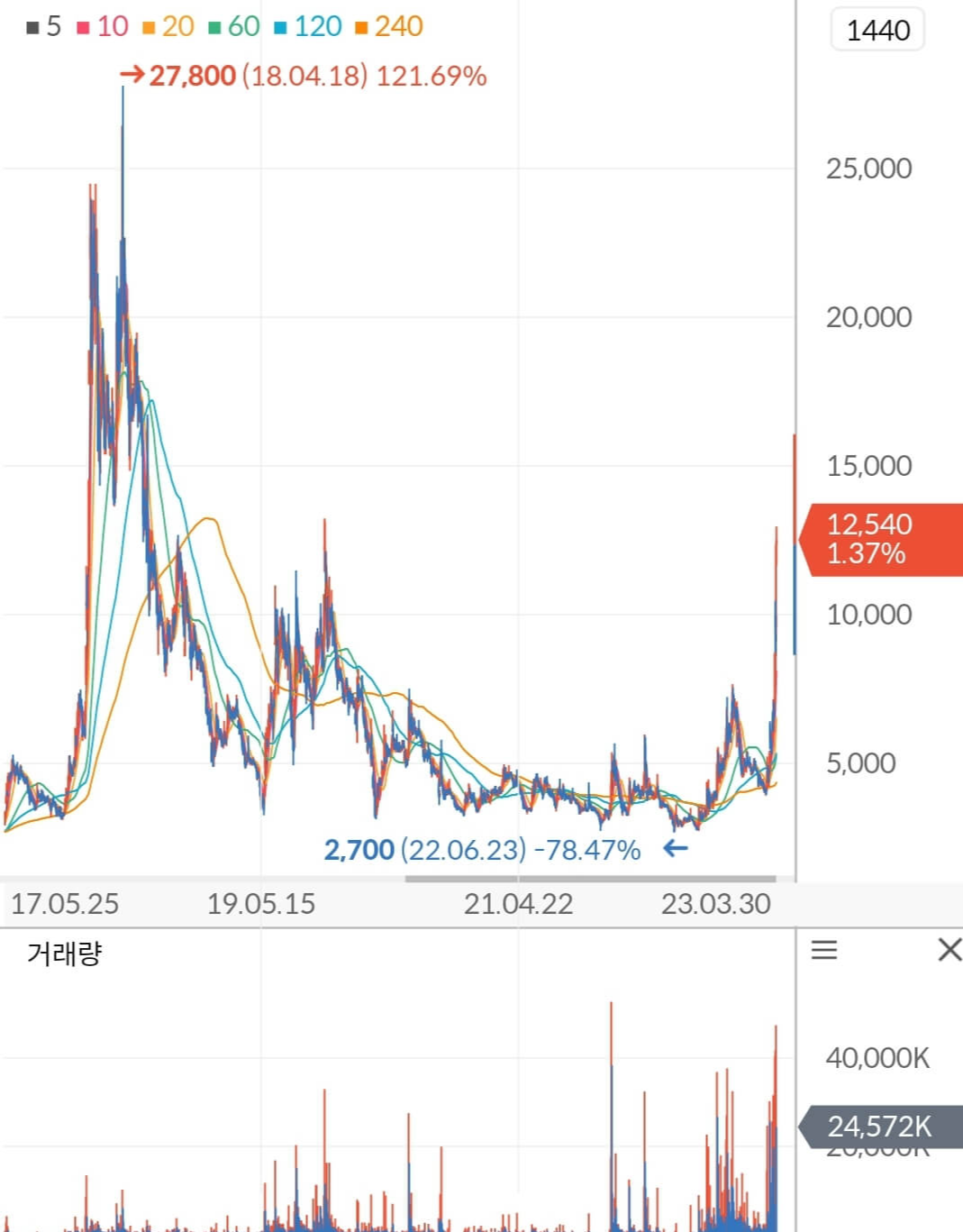 - 테마를 쫓는 기업인만큼 2차전지 테마에 붙었고 대형 거래량 출현 중