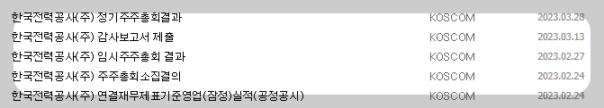 1) 종목명 : 한국전력