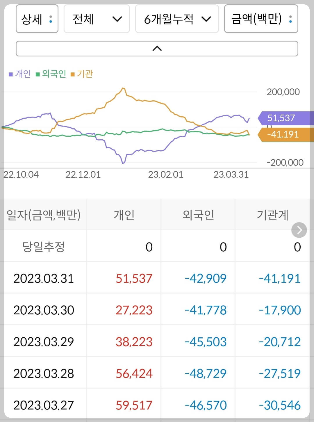 2) 공매도 누적 수급