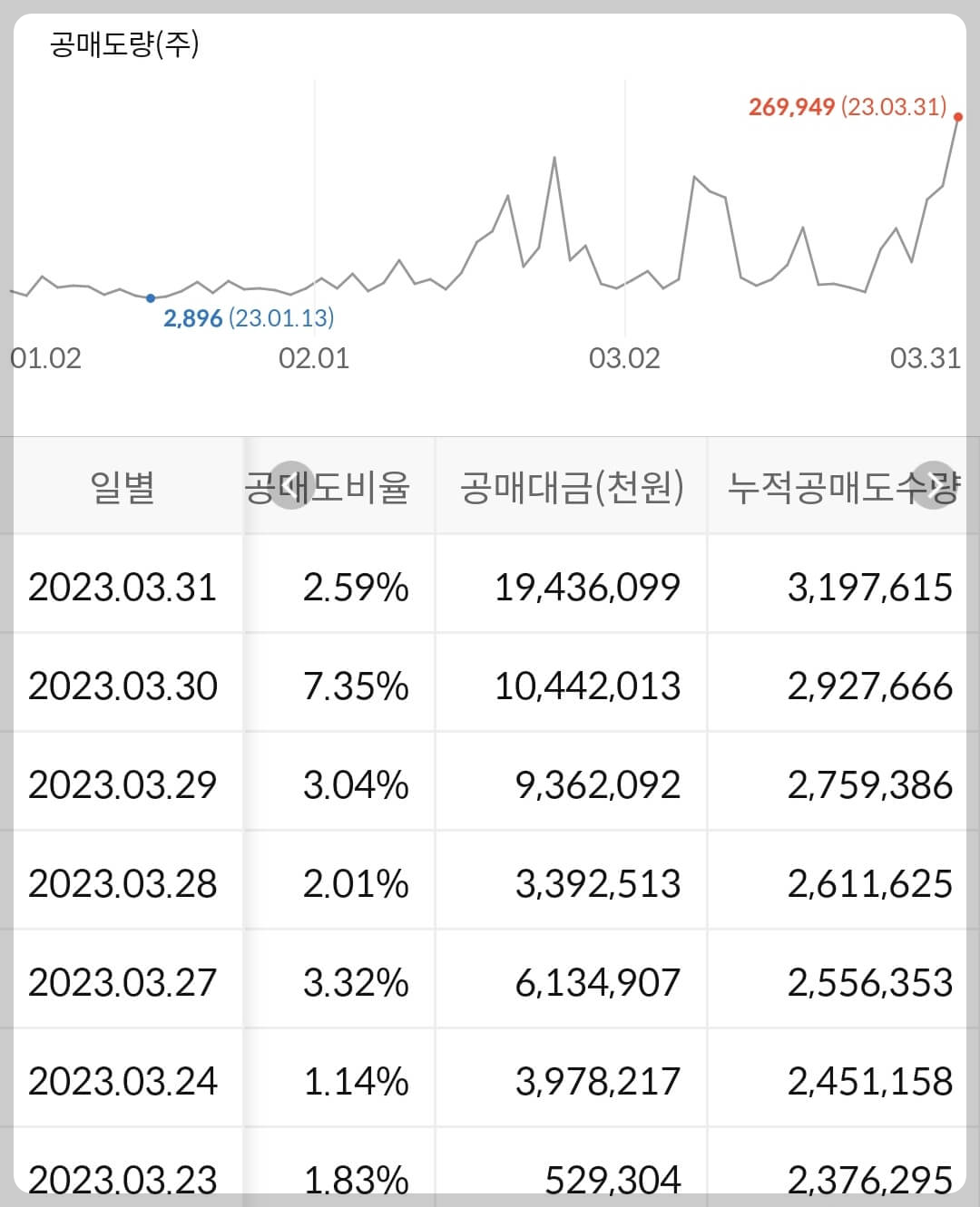 - 누적 공매도 금액은 2,000억 원으로 추산되며 이는 DB하이텍 시총 3조 대비 7%에 해당