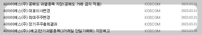 1) 종목명 : 씨아이에스