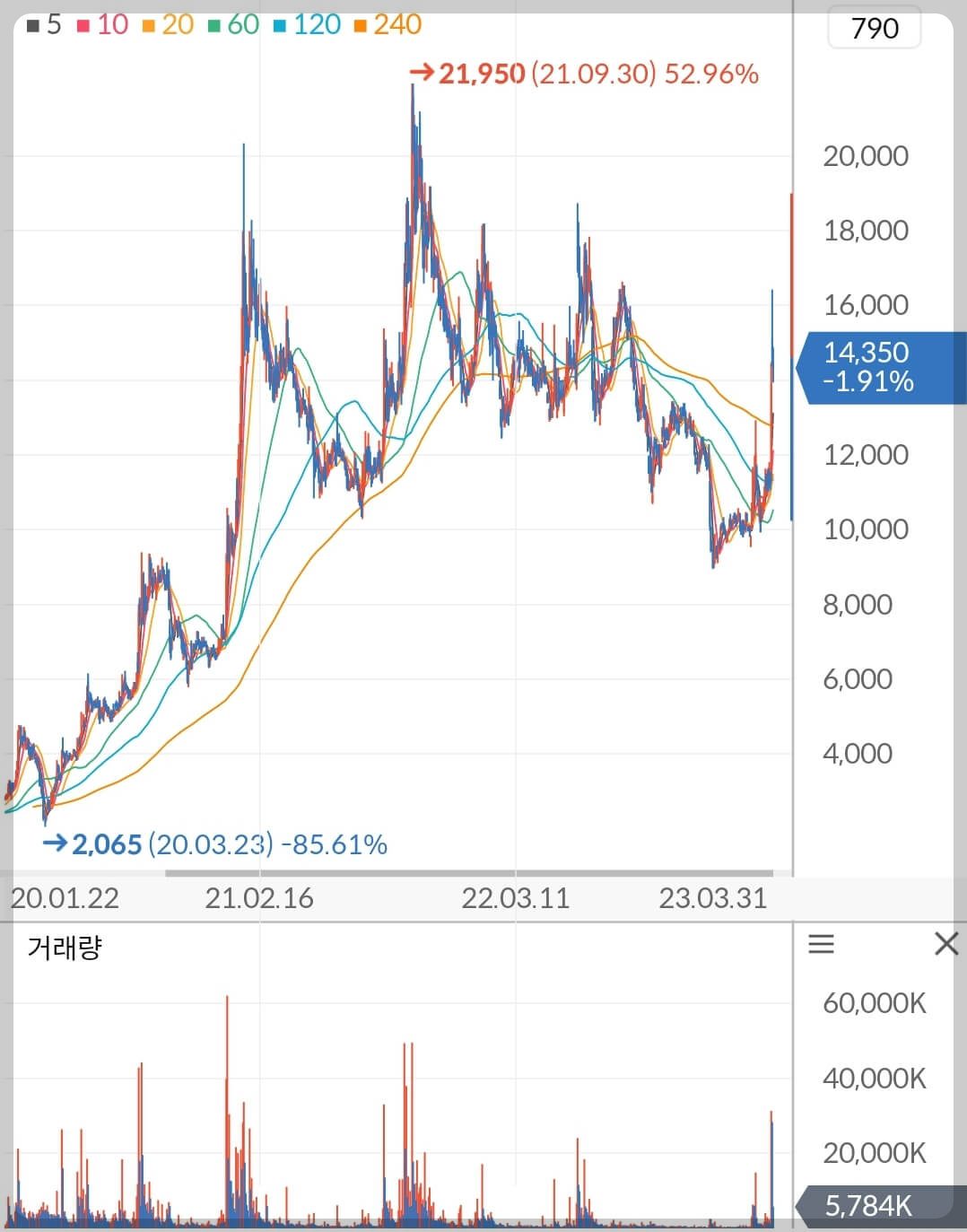 - '20년 3월 코로나 팬데믹 선언 ▼ 주가 2,060원까지 하락