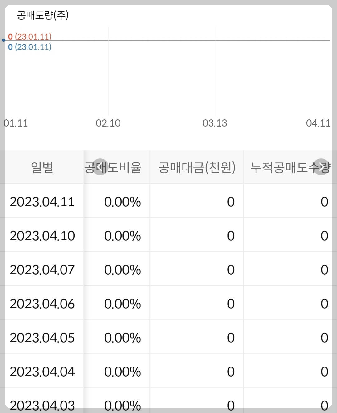 - 누적 공매도 금액은 없습니다.