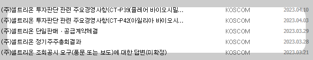 셀트리온 주가 전망 및 목표주가(23년도 4월)