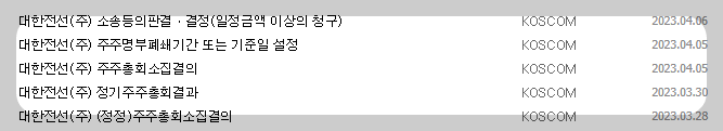 1) 종목명 : 대한전선