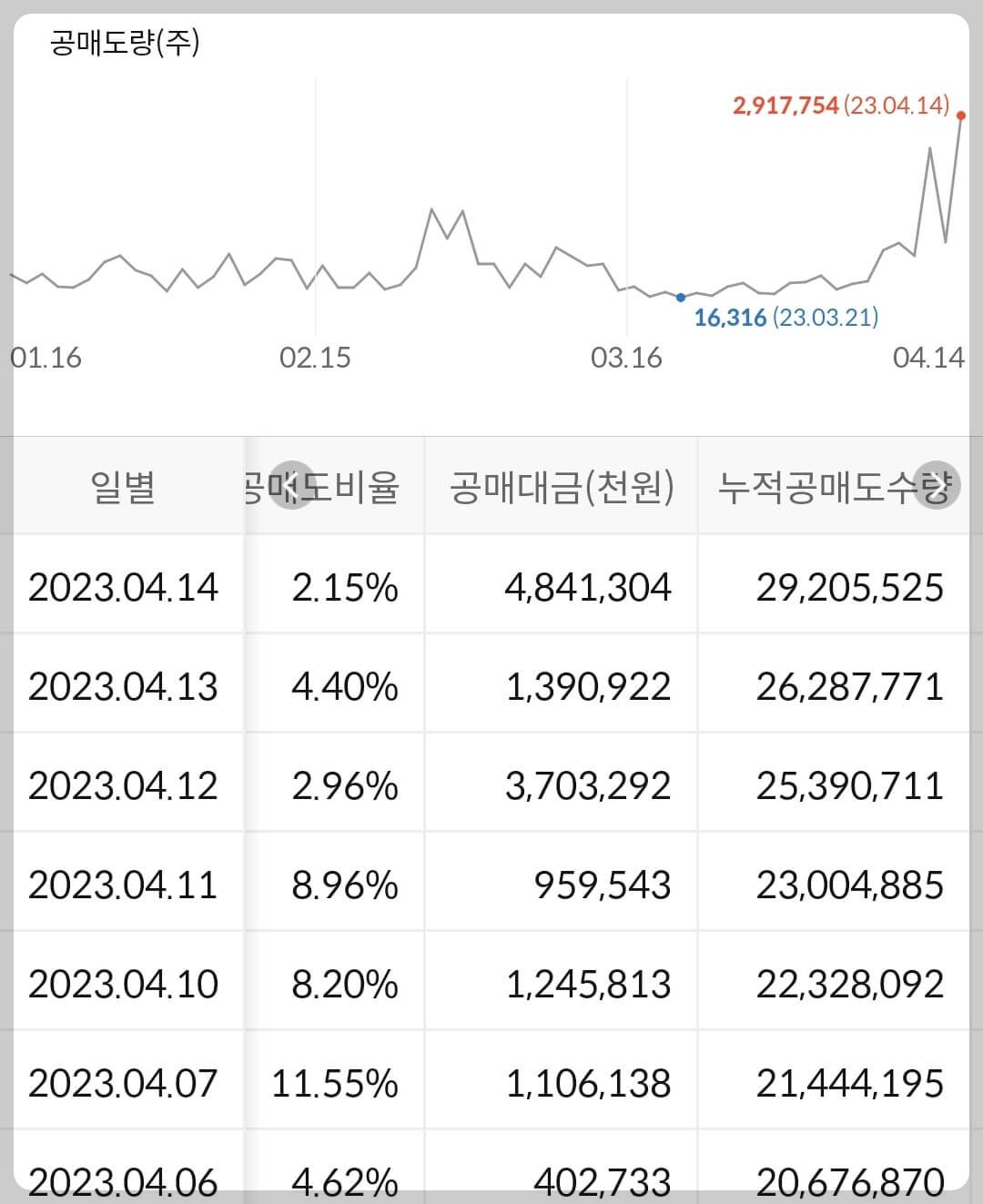 2) 공매도 누적 수급