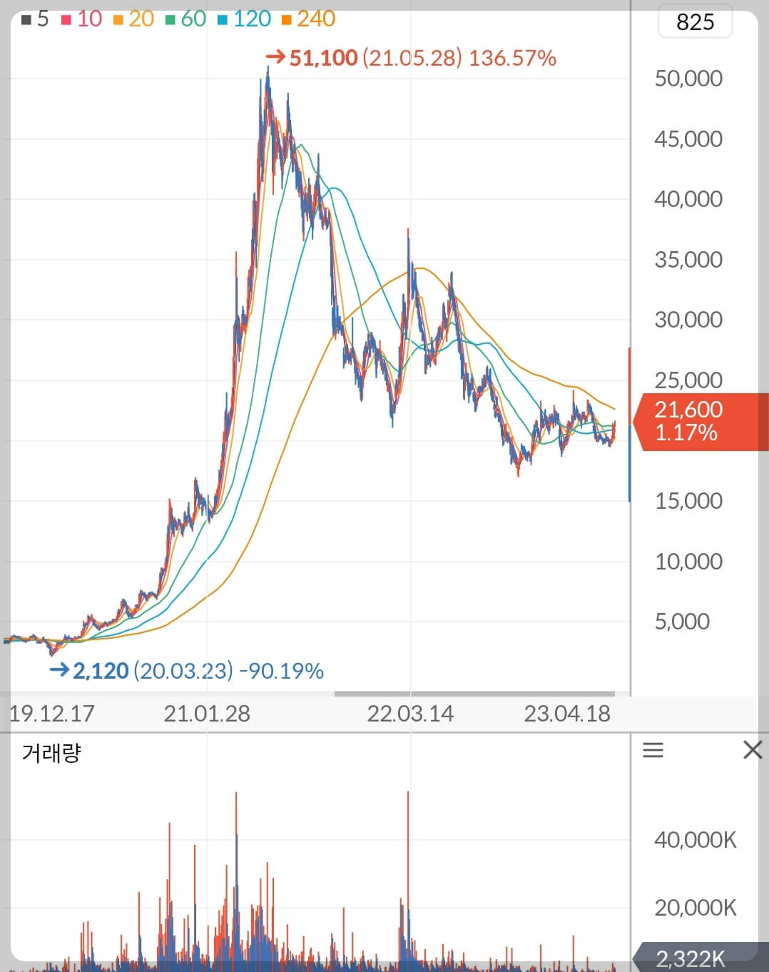 - '20년 3월 코로나 팬데믹 선언 ▼ 주가 2,120원까지 하락