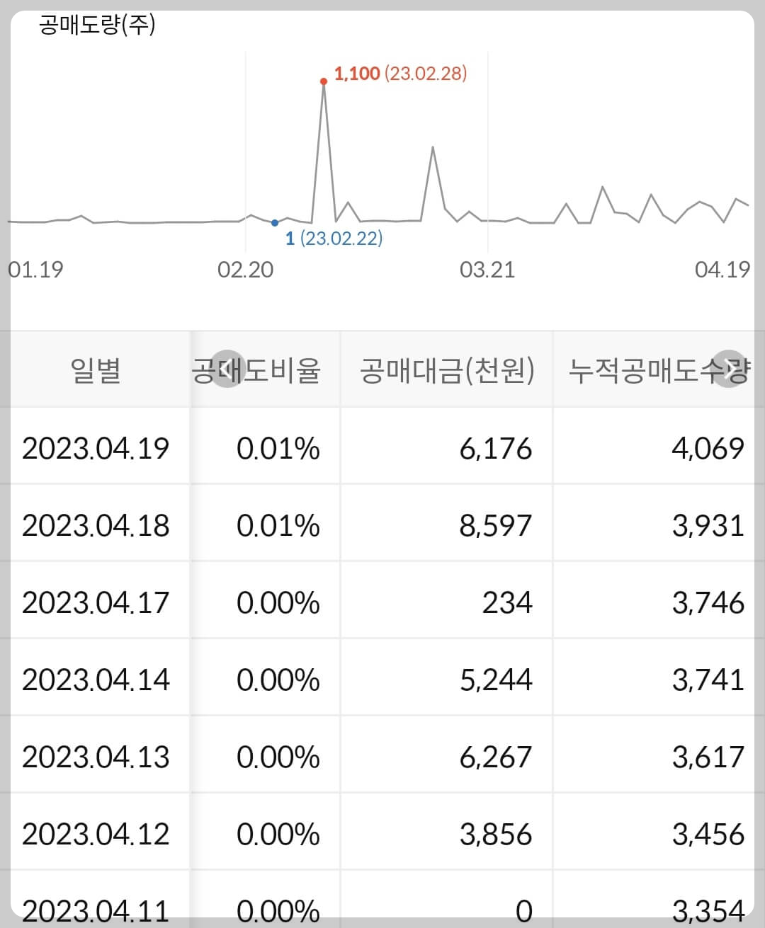 - 개인 425억 매수, 외국인 96억 매도, 기관 296억 매도
