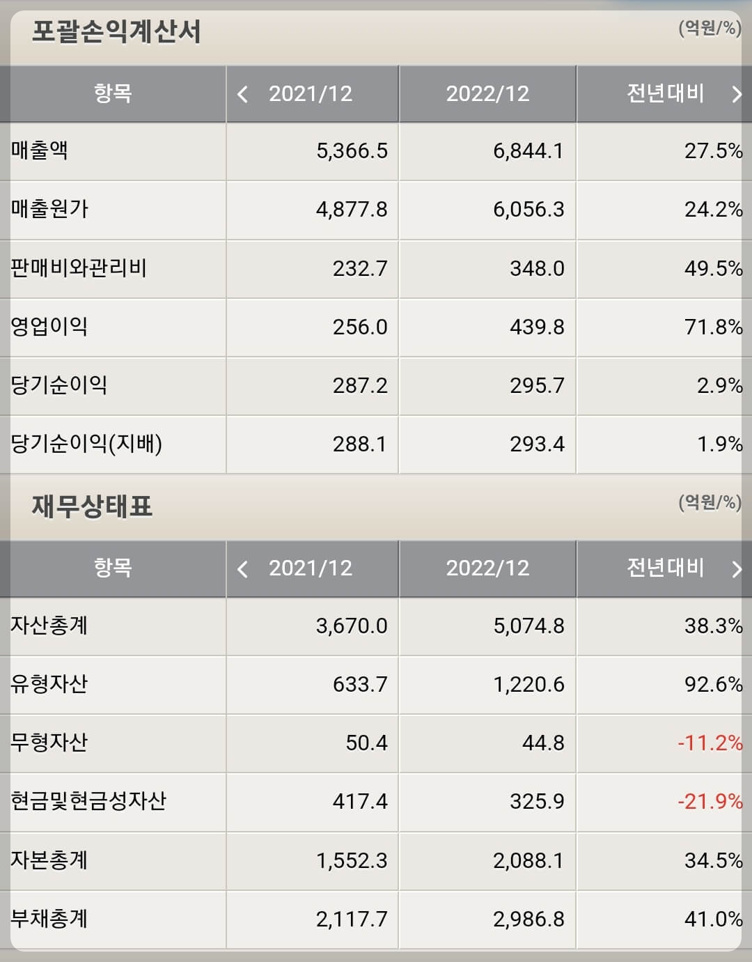 - '22년 외형 및 이익 큰 성장 기록 ▲ 주가 15,000원대 상승