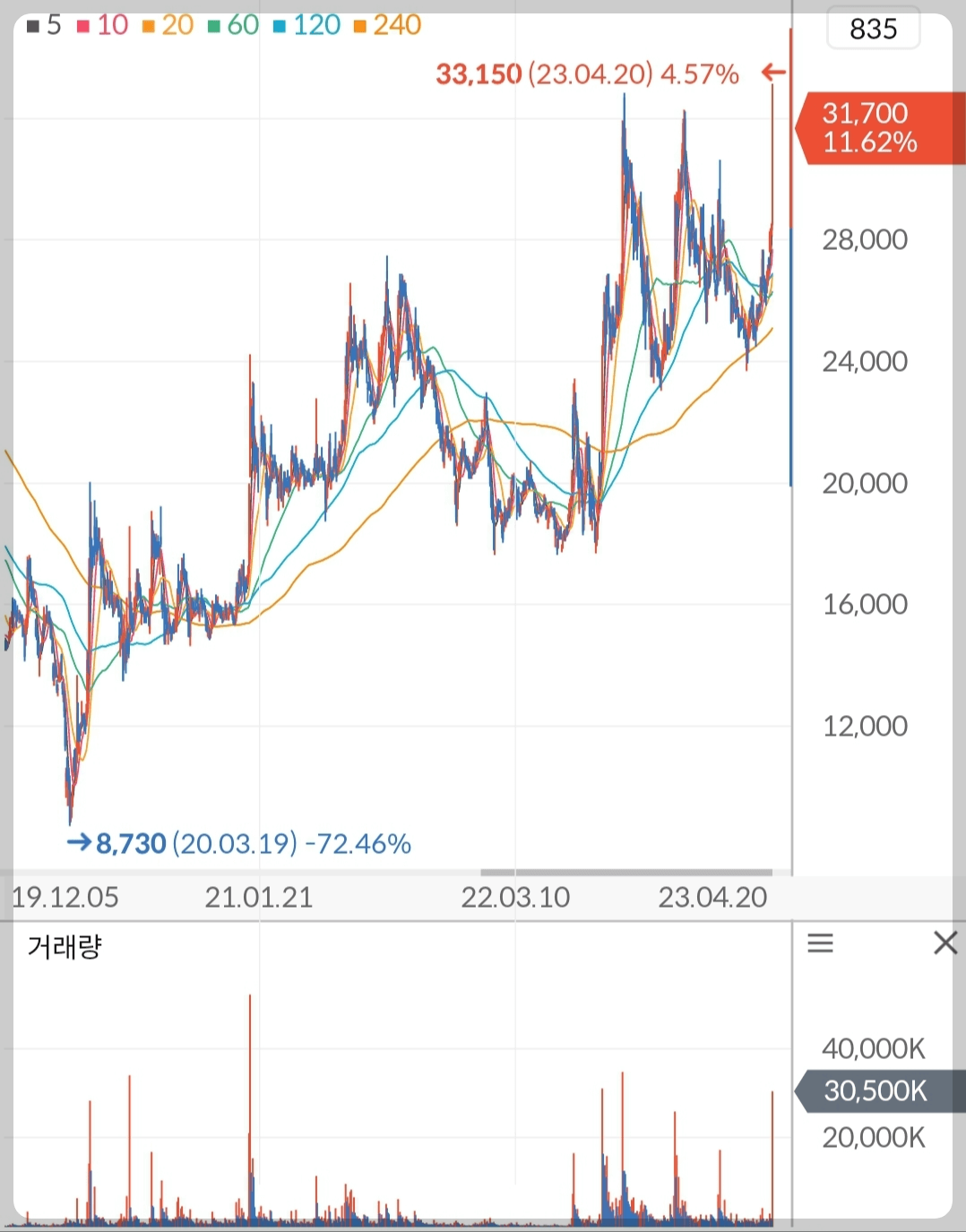 - '20년 3월 코로나 팬데믹 선언 ▼ 주가 8,700원까지 하락
