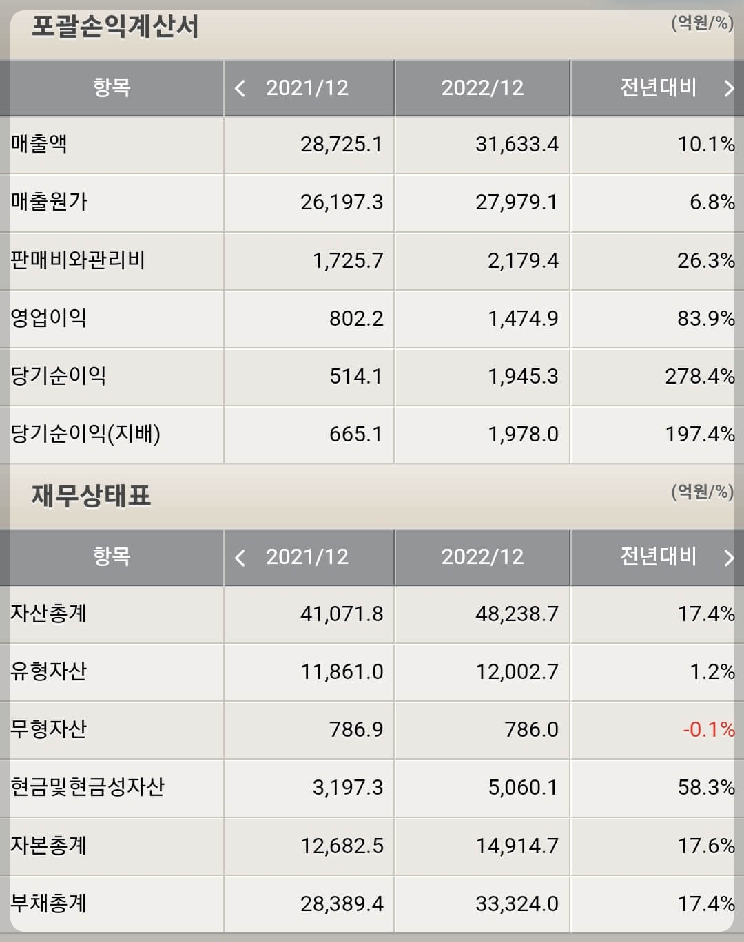 7) 외국인 지분율 : 10.94%(22년 8월 당시 4.9%)