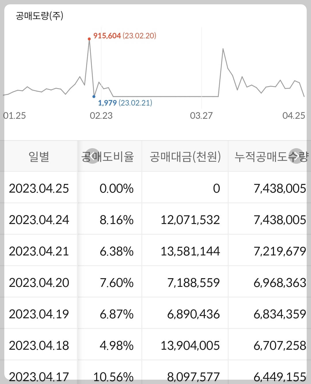 2) 공매도 누적 수급