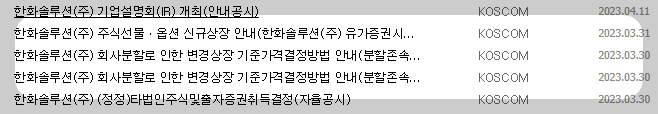 - 종목명 : 한화솔루션