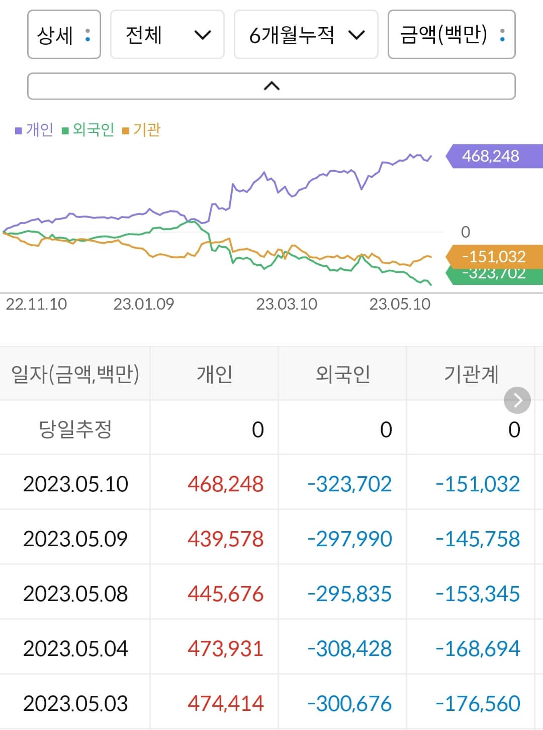 - 개인 4,682억 매수, 외국인 3,237억 매도, 기관 1,510억 매도