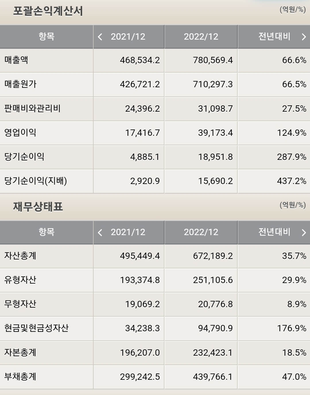 2) 영업이익 기준 2022년 대비 70% 이상 역성장 확정