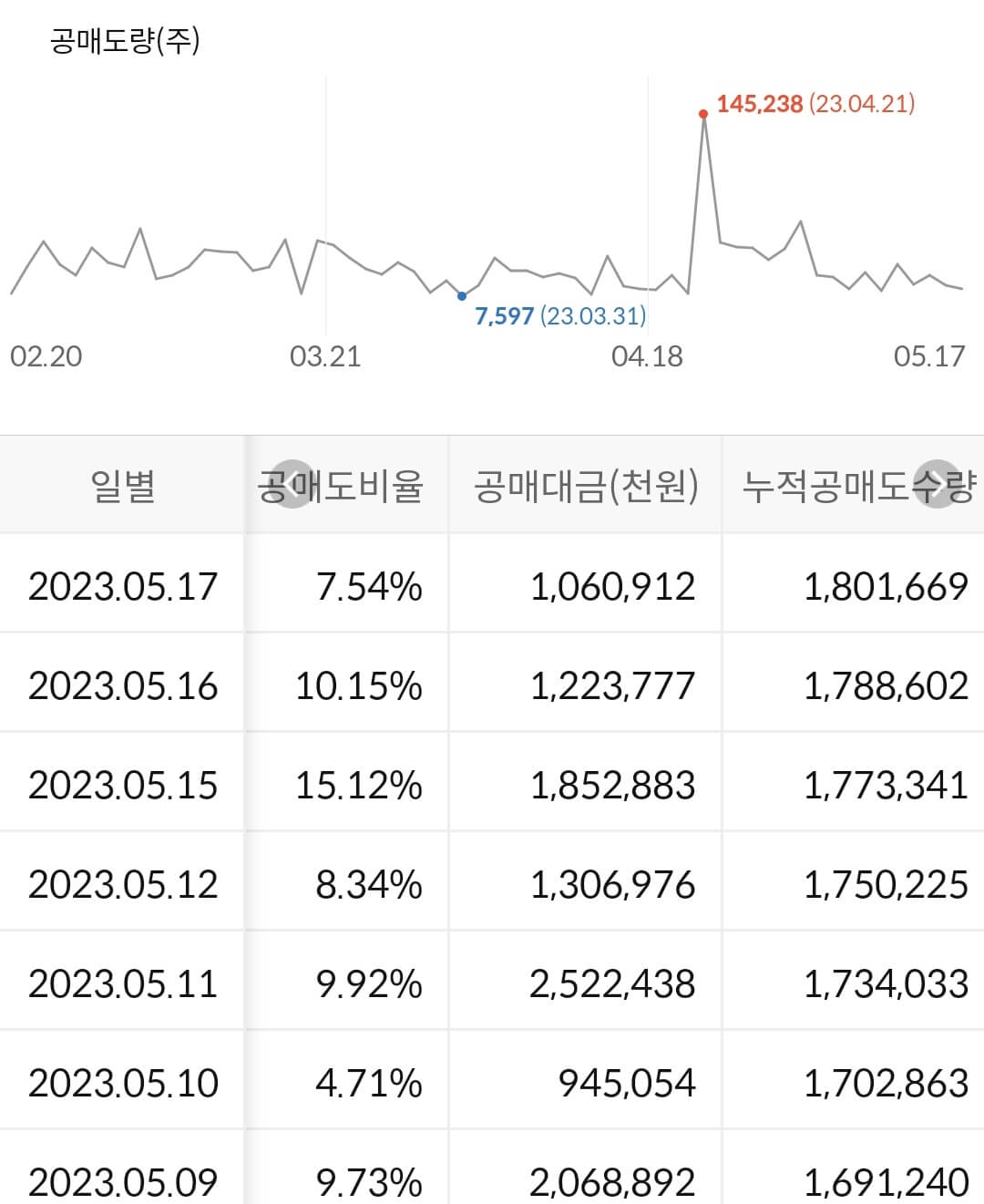 - 누적 공매도 금액은 1,500억 원으로 추산되며 이는 호텔신라 시총 3조 대비 5.0%에 해당