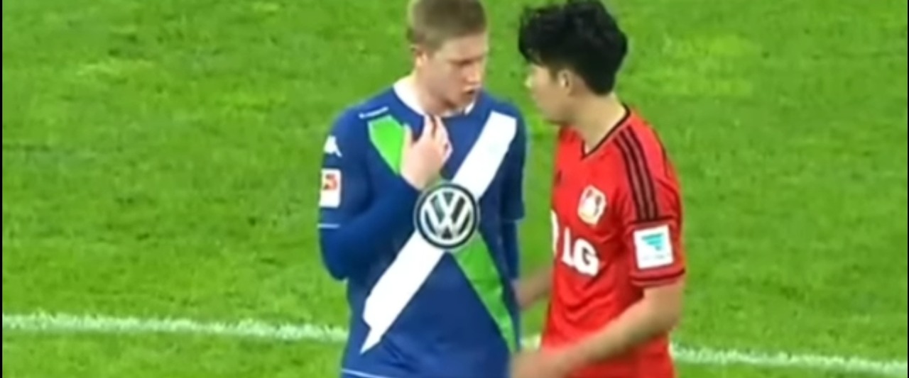 8년전, 2015년 손흥민 선수가 독일의 분데스리그 레버쿠젠에 소속되어 뛸때 당시 볼푸스부르크에서 뛰던 케빈 데브라이너와 맞대결을 펼친 적이 있었습니다. 해당 경기에서 손흥민 선수는 헤트트릭을 기록했지만 팀은 4:5로 패했고, 경기 후 케빈 데브라이너는 손흥민 선수에게 유니폼 교환을 요청했습니다. 이 사건이 인연이 되어 프리미어리그 최고의 미드필더, 최고의 공격수가 된 지금도 경기장에서 만나면 애정 넘치는 인사를 주고 받는 사이라고 합니다.