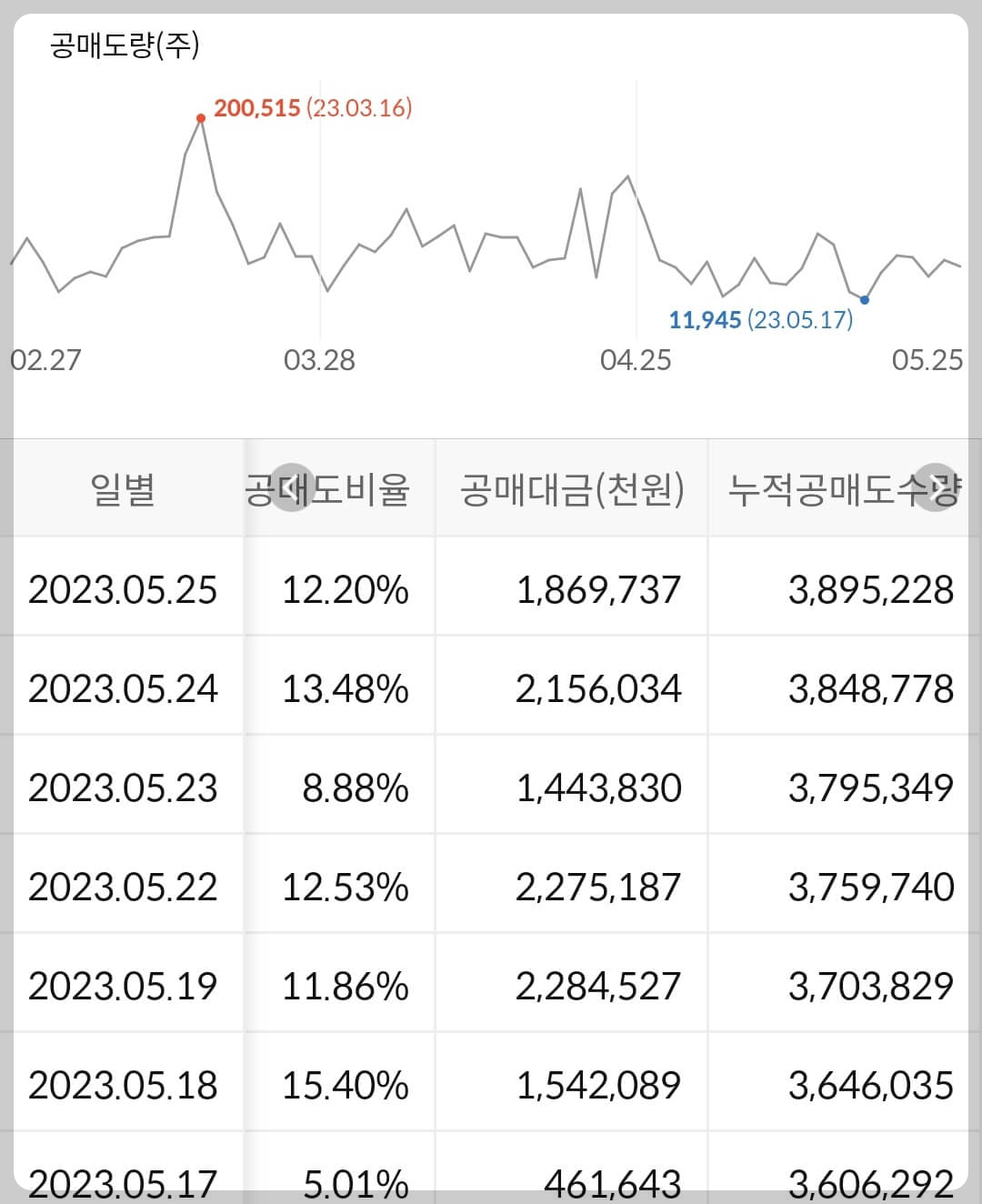 2) 공매도 누적 수급