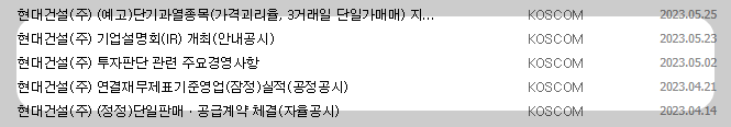 - 누적 공매도 금액은 1,200억 원으로 추산되며 이는 현대건설 시총 4.3조 대비 2.8%에 해당