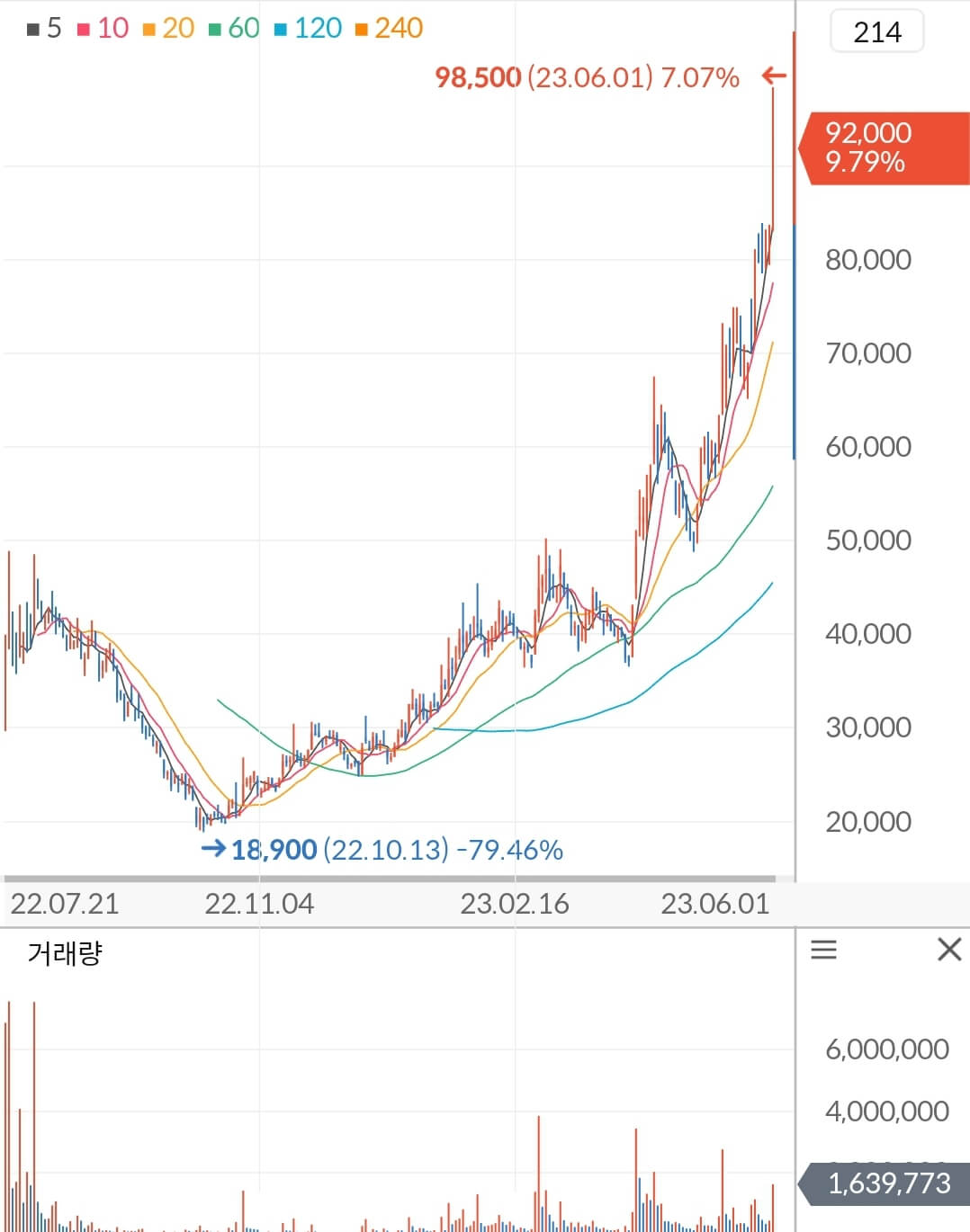 - Chat GPT 등장으로 AI 섹터 수급 유입 ▲ 주가 92,000원 대 상승