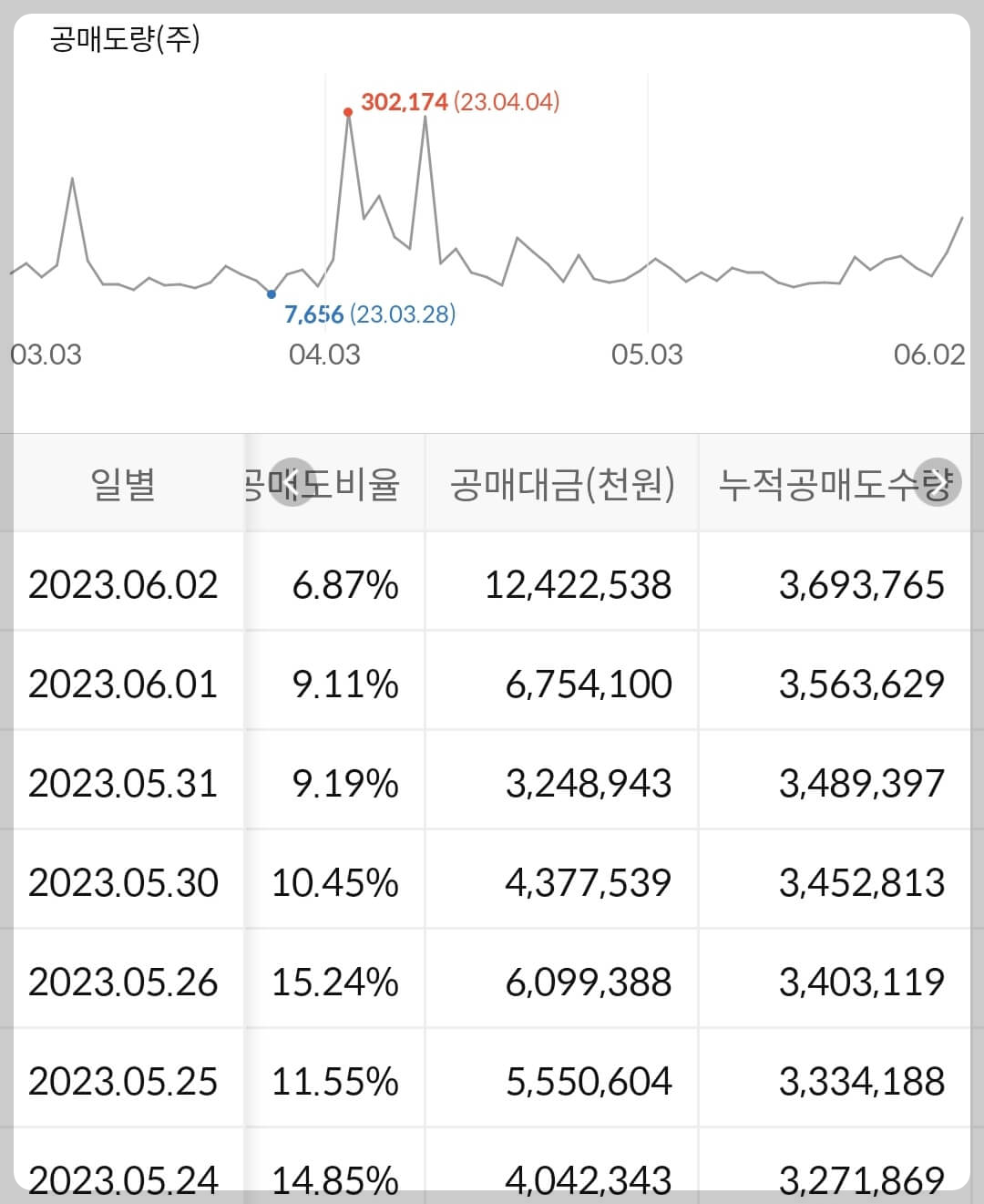- 누적 공매도 금액은 3,000억 원으로 추산되며 이는 SK아이이테크놀로지 시총 7조 대비 4.3%에 해당