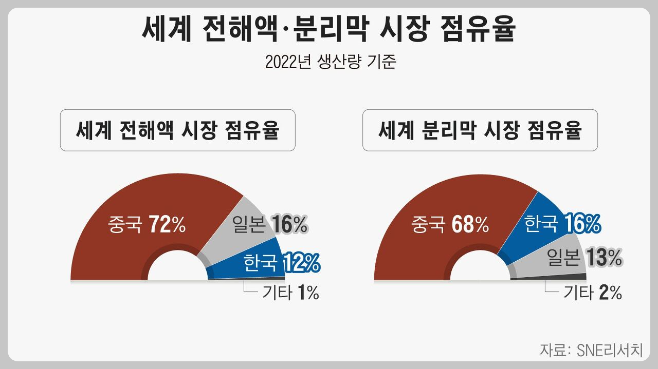 2) 미국 IRA 법안으로 중국 분리막 업체들 경쟁력 약화 가능성 존재