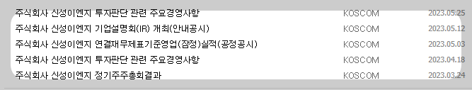1) 종목명 : 신성이엔지