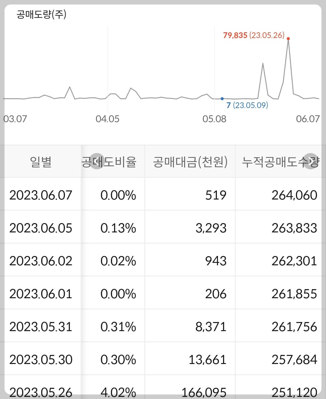 - 누적 공매도 금액은 없습니다.