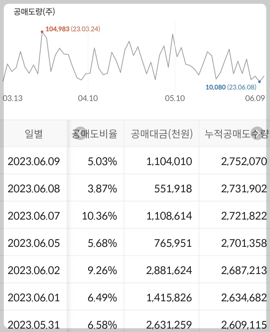 2) 공매도 누적 수급
