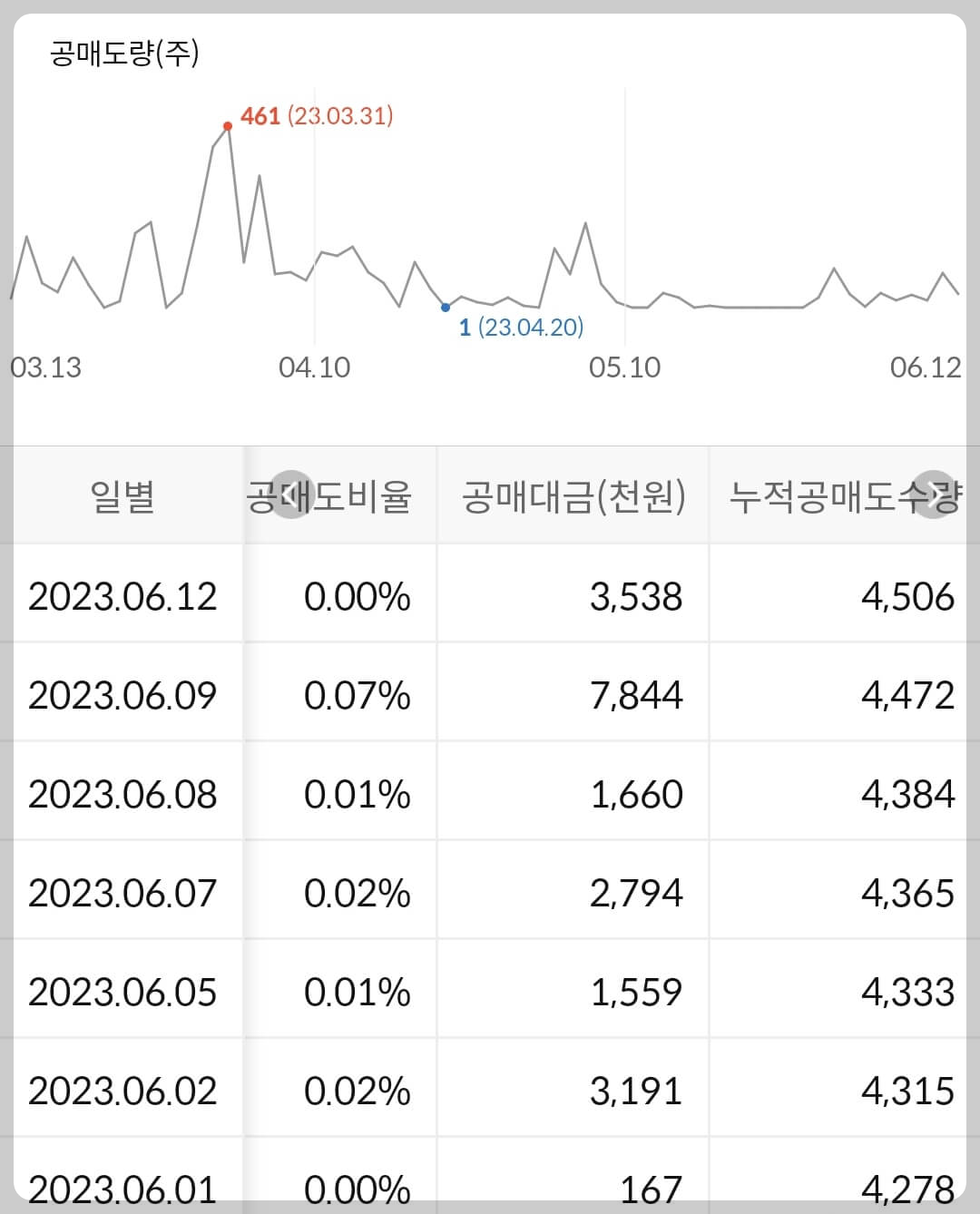 - 누적 공매도 금액은 없습니다.