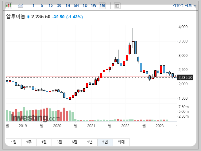 종목의 강점과 약점을 바탕으로 삼아알미늄의 주가를 전망해보겠습니다. 투자의 책임은 오로지 본인에게 있으므로 잘 판단하셔서 투자하시길 바랍니다.