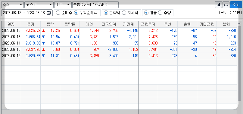 주식시장 주간 수급 분석(23년도 6월 2주차)